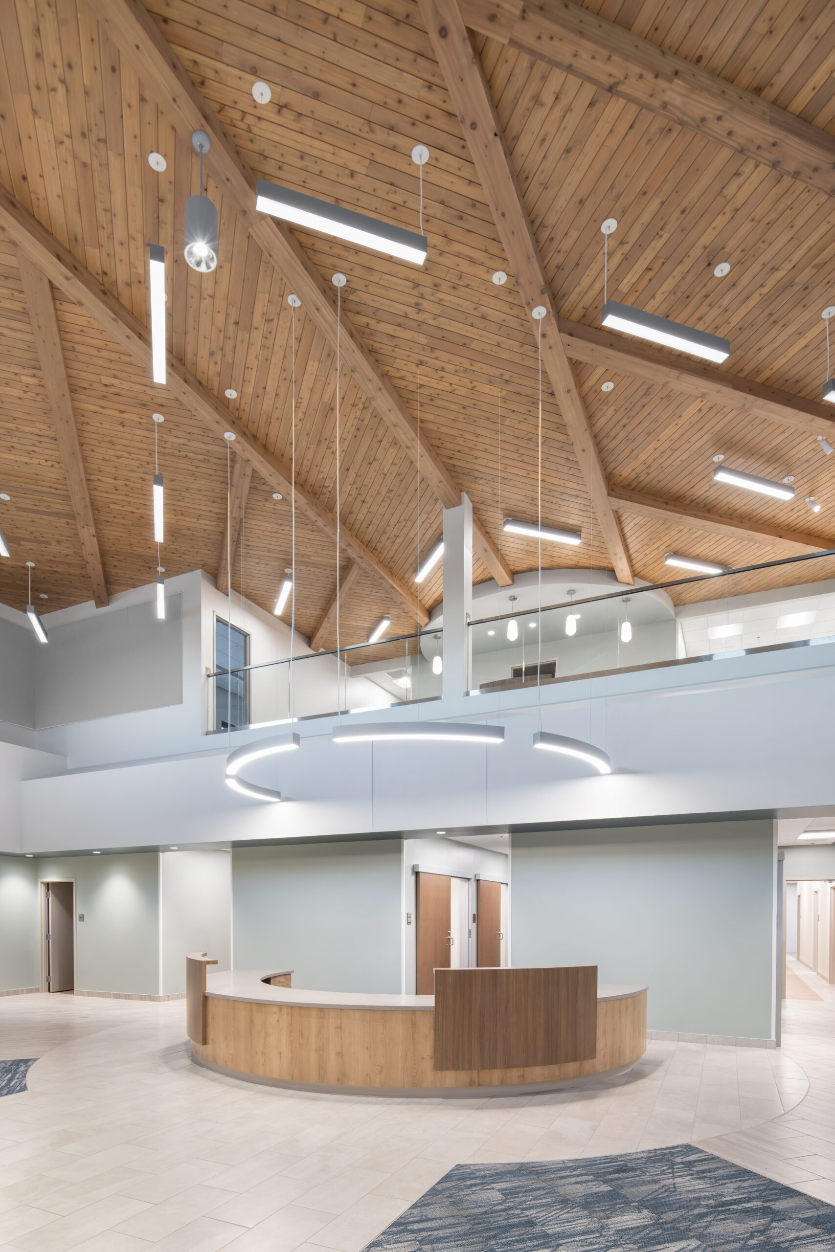 Job Description: New electrical construction of 28,000 SF (2) story health clinic serving (7) Mid-Atlantic tribes. Project includes primary care services, exam rooms, laboratory, and drive through pharmacy. T&H completed demolition and consolidation of multiple existing services into new 2,000A with fire pump, fire alarm, telecom,lighting controls, and extensive site work.